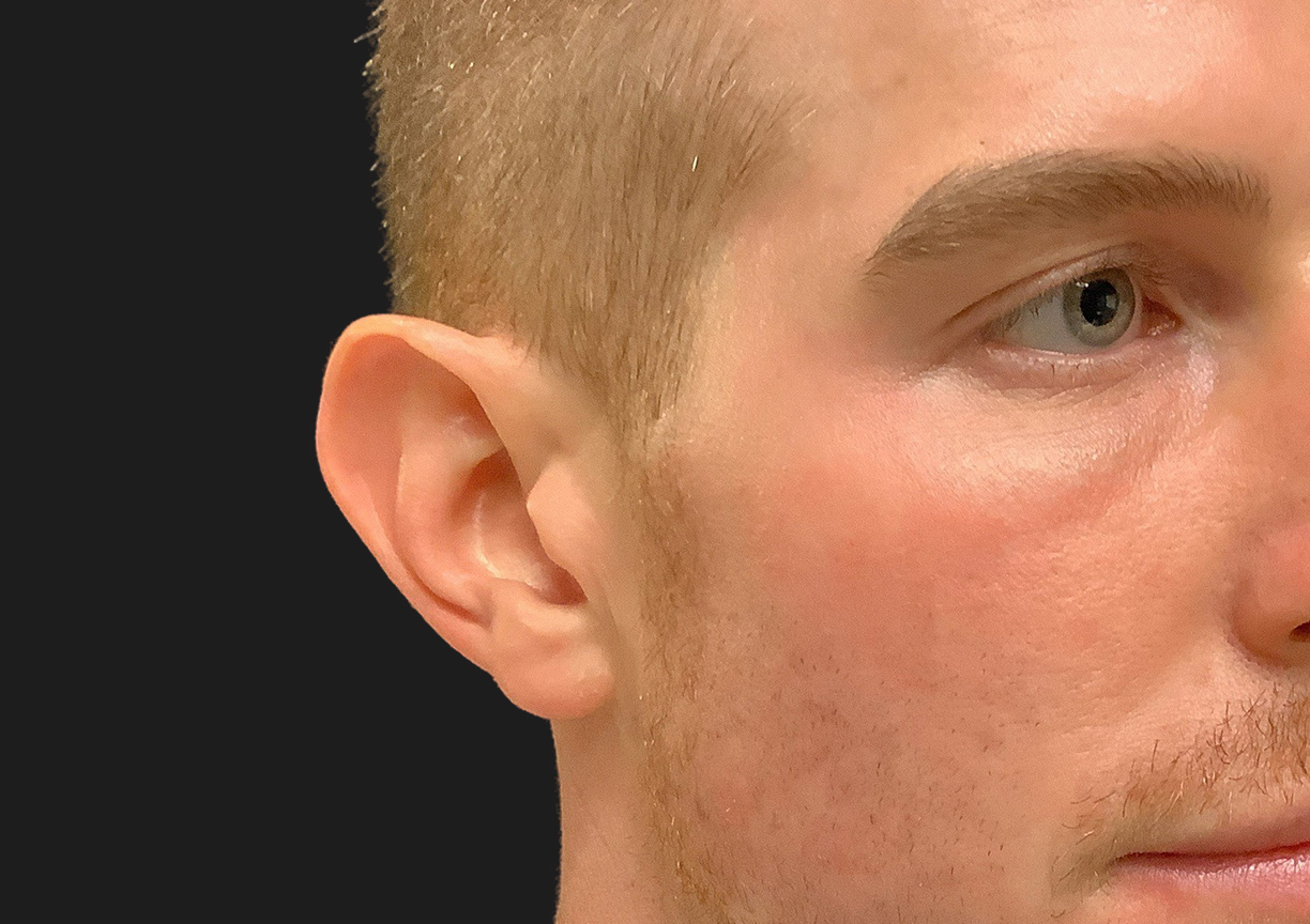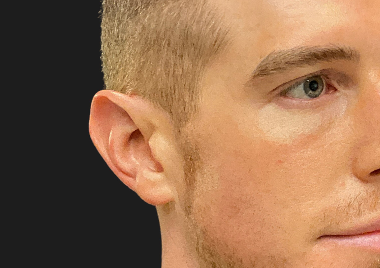 Description: Dr. Patel performed an Otoplasty for this patient, whose primary aesthetic goal was to address ears that protruded more than desired. This procedure carefully sculpts and repositions the ear cartilage to create a less prominent and more natural ear appearance. Even at only 3 weeks post-operatively, a notable enhancement in his ear position and overall facial harmony is evident, and we anticipate further refinement in the coming weeks.