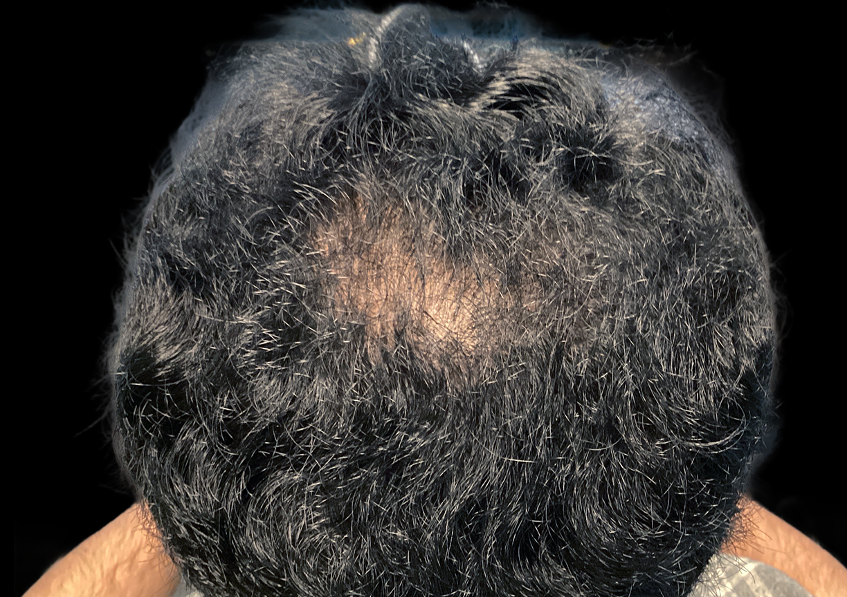 Description: To combat hair thinning and restore density in his hairline and crown, this patient committed to a series of five PRF (Platelet-Rich Fibrin) hair restoration treatments. This advanced, 100% natural treatment utilizes the healing power of the patient's own concentrated platelets and growth factors to nourish and reactivate dormant hair follicles. After completing his treatment plan, we have observed a significant improvement in hair growth, resulting in a visibly fuller and denser appearance in the treated areas.