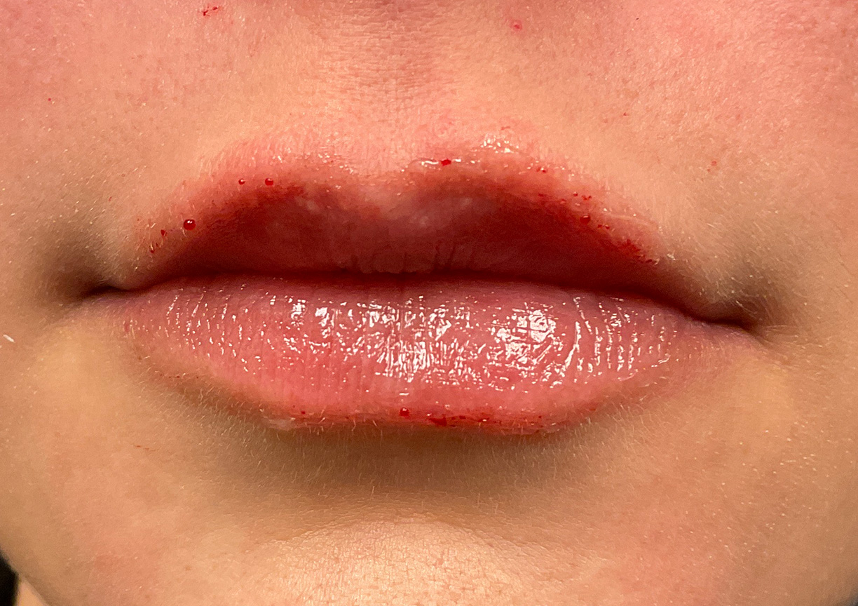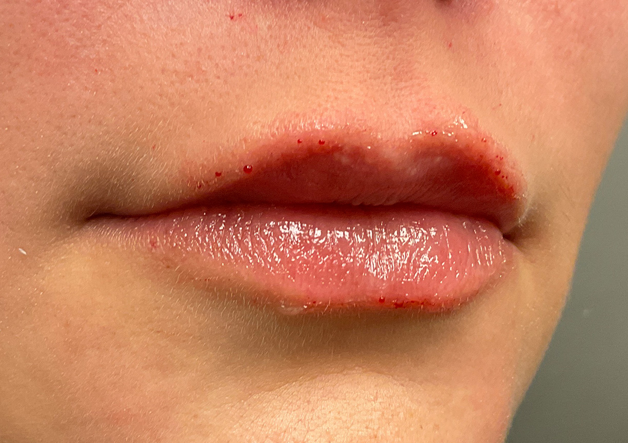 Description: Using a 0.5 syringe of filler, we focused on structuring the vermilion border to crisp the Cupid's bow definition. This approach provided a subtle increase in overall volume, enhancing her natural shape while maintaining a balanced, hydrated look.