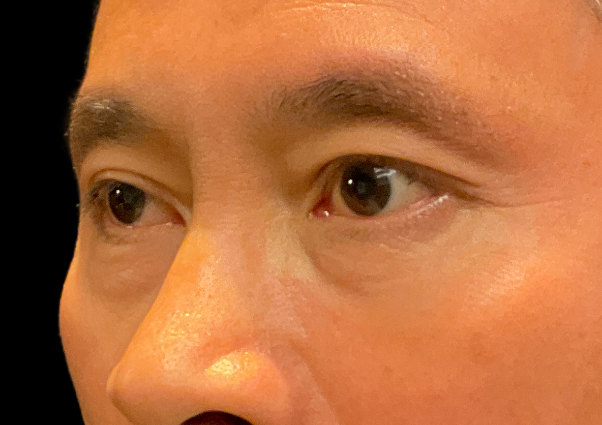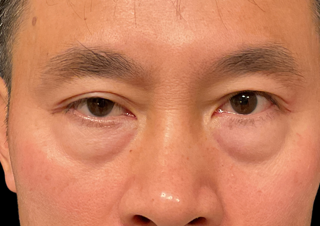 Description: To address puffy undereyes, we performed a lower blepharoplasty to surgically remove and reposition the displaced fat, effectively smoothing the transition between the lower eyelid and the cheek. This procedure eliminates the heavy shadowing and restores a refreshed, rested look while maintaining the patient's natural masculine eye shape.
