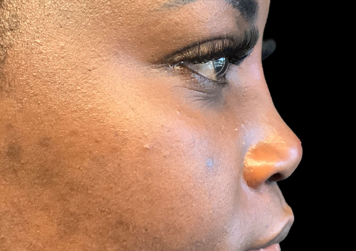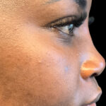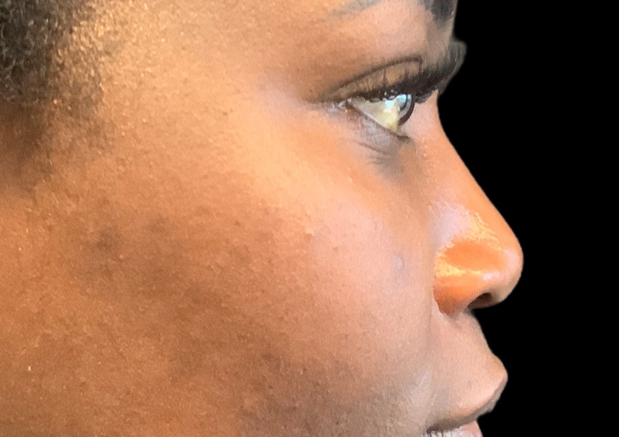 Description: A non-surgical nose job uses filler to improve the shape of the nose without the need for surgery or incisions. For this patient, we added volume to the bridge to build it up and create a stronger, straighter profile. We also placed filler in the tip of the nose to give it support and lift it upwards, fixing the drooping appearance.