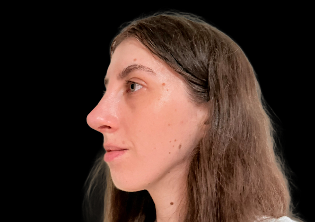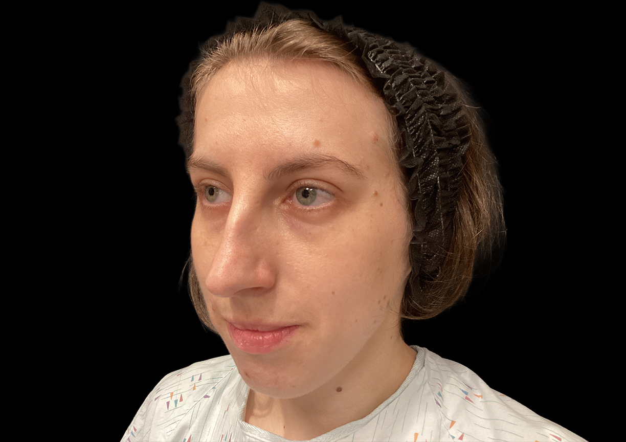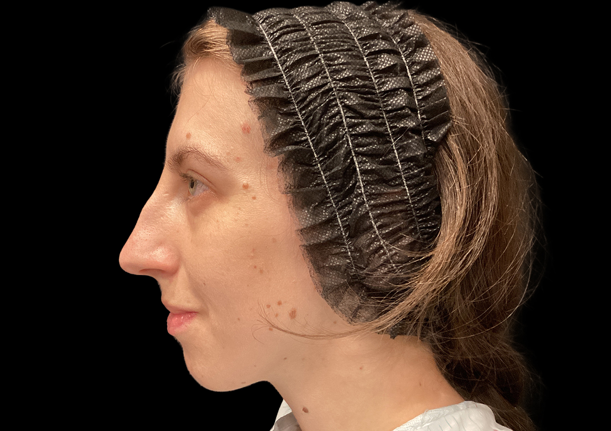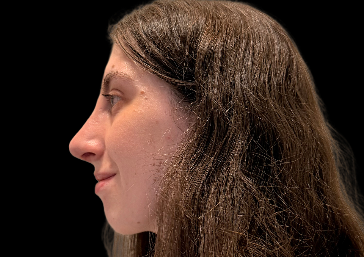 Description: This patient's primary concern was the prominent dorsal hump on her nasal bridge, for which she underwent a rhinoplasty to achieve a more refined and balanced profile. The procedure involved carefully reducing the bone and cartilage that created the bump, while also refining and slightly rotating the nasal tip for improved definition. The final result is a beautifully smooth bridge and a subtly lifted tip, creating an overall aesthetic that is balanced, natural, and in harmony with her other facial features.